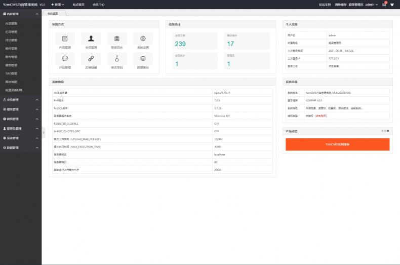采用YzmCMS5.5框架,漂亮简洁大气。
