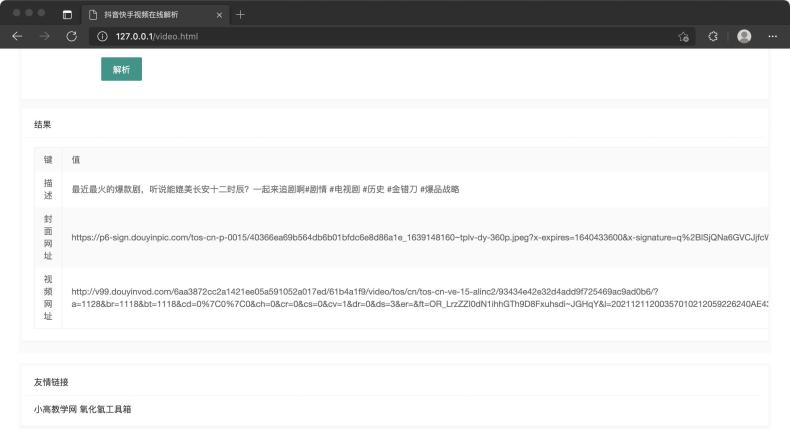 输入作品网址即可,获得 作品的描述、封面、无水印视频