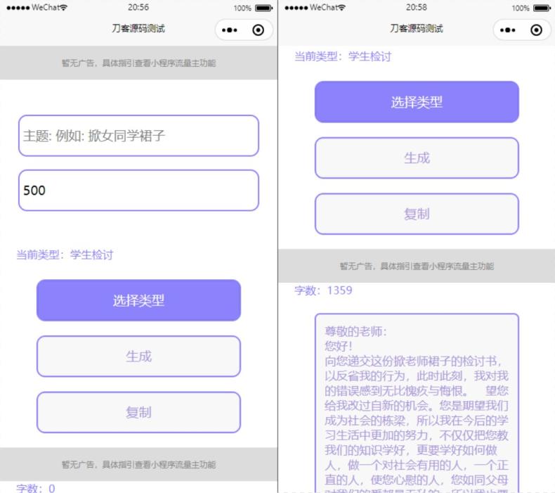 40源码 » 检讨书生成微信小程序工具源码-支持流量主