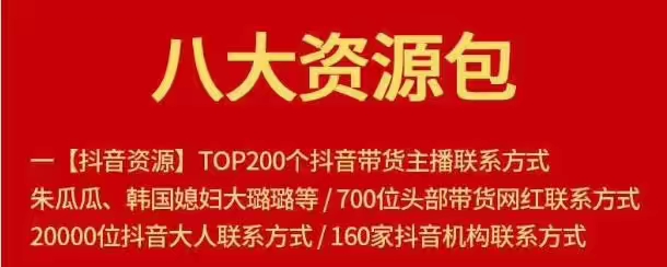40源码 » 八大资源包 含抖音主播 淘宝直播 快手网红 小红书等资源
