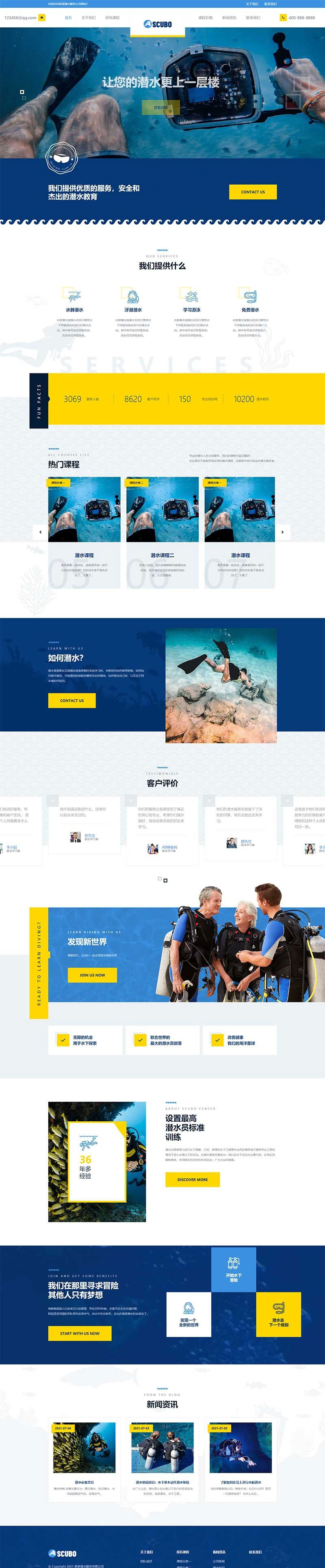 3、适用于水上运动设备织梦模板、潜水服务网站模板;
